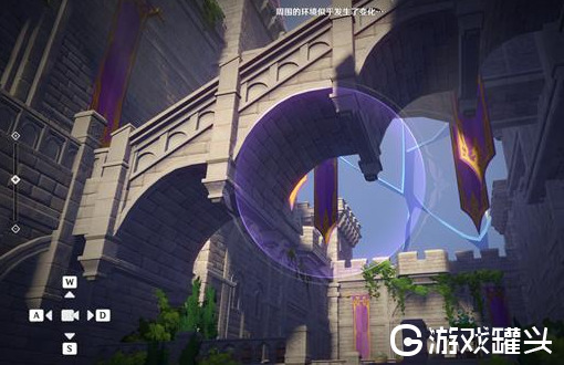 1、在经过一段剧情之后触摸夜鸦雕像我们进入了幽夜净土之中,进去之后我们会发现一个眼睛一样的装置,这个装置将在本次秘境探索中起到很大的作用,根据提示,我们用装置将前方的道路拼接起来,随后沿着拼接起来的路一路往上走;